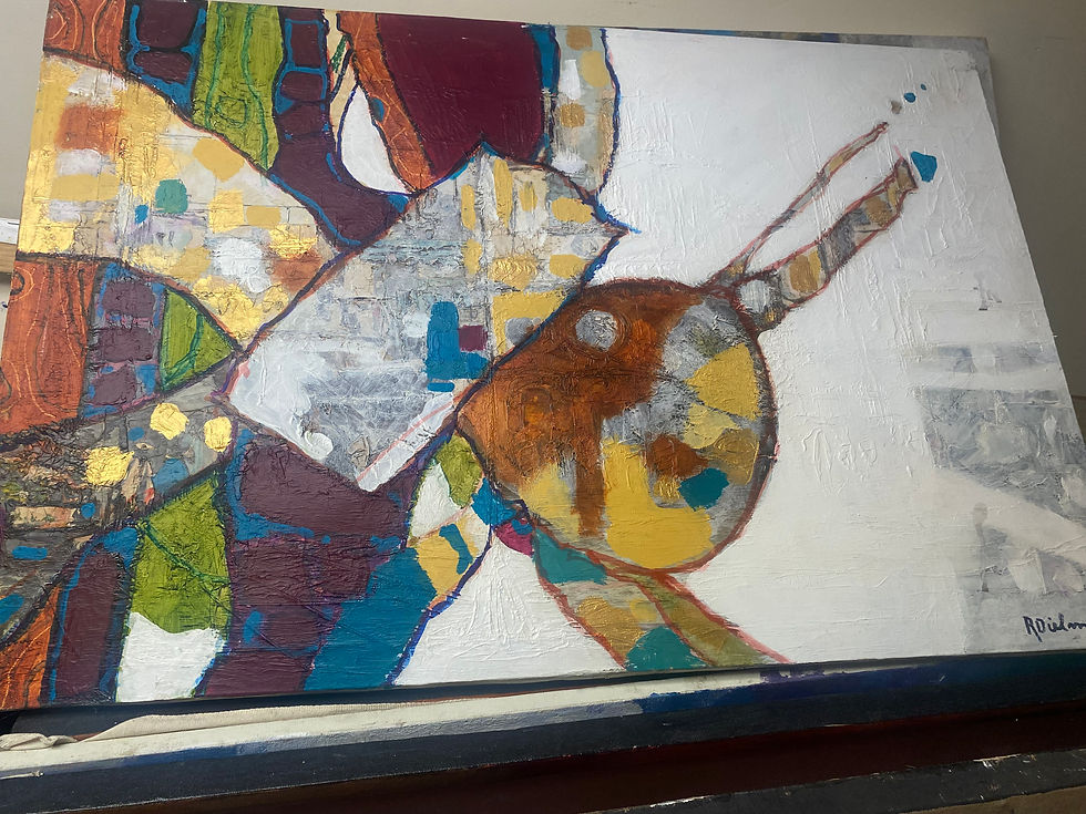 Large, cream-multi abstract